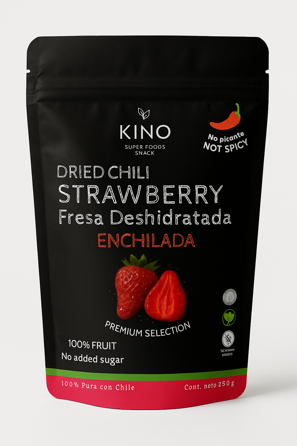 FRESA DESHIDRATADA CON CHILE 100% ORGÁNICA 250g sin azúcar añadida
